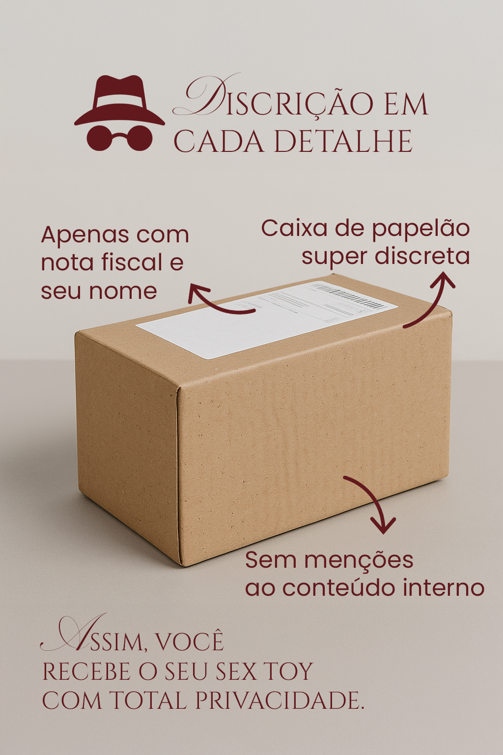 Nossas caixas são produzidas em material pardo resistente, garantindo proteção e discrição. A etiqueta de envio apresenta apenas a razão social Inovação Comercio Online LTDA como remetente, sem qualquer menção ao nome da loja ou ao conteúdo do pedido. Assim, você pode ficar tranquilo: não há nenhuma referência a produtos sensíveis ou de caráter íntimo.